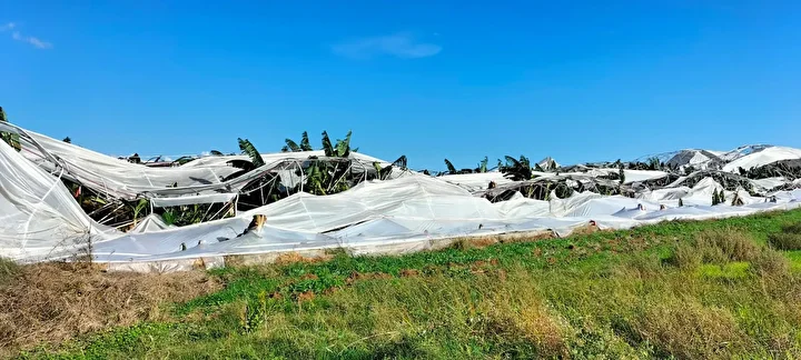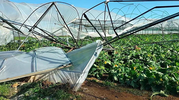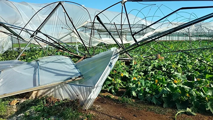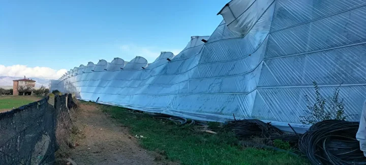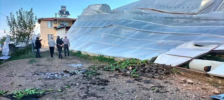 Yavruoğlan ve Gündoğdu mahallelerinde meydana gelen hortumda, 4 seranın demir aksamları kırıldı, çatıları çöktü ve naylon kaplamaları parçalandı.
