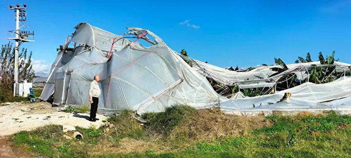Serası zarar gören üreticilerden Mustafa Şirin, hortumun yaklaşık yarım saat sürdüğünü belirterek, kapının yıkıldığını, seraların arkasındaki ağaçların devrildiğini, evinin çatısı ile köpek kulübesinin savrulduğunu ifade etti.