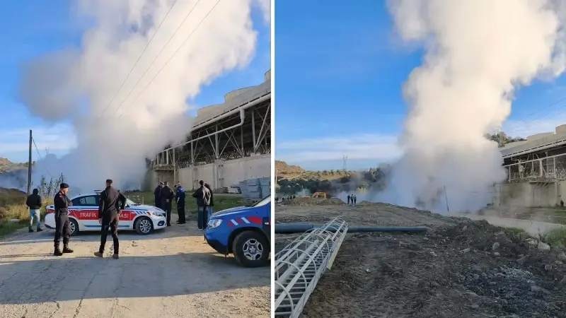 Aydın'ın Germencik ilçesinde jeotermal sıcak su boru hattında patlama oldu. Germencik-Bozköy kara yolu trafiğe kapatıldı.