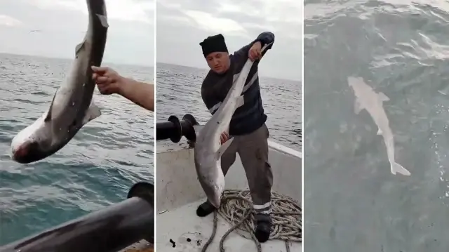 Uça, yakaladığı köpek balığını daha sonra tekrar denize bıraktı.