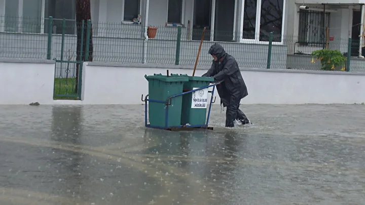 Meteorolojiye göre, ilçede son 24 saatte metrekareye 95 kilogram yağış düştü.