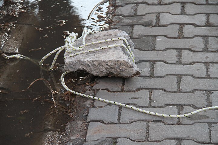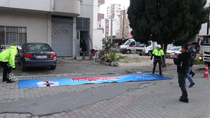 Erdemli ilçesi Merkez Mahallesi Atatürk Caddesi'nde dün saat 16.00 sıralarında Esnaf ve Sanatkarlar Odası seçimleri için bir ucu üç katlı binanın terasına asılan afişin bağlı olduğu taş, yolda yürüyen Nurhayat Altınkaya'nın başına düştü.