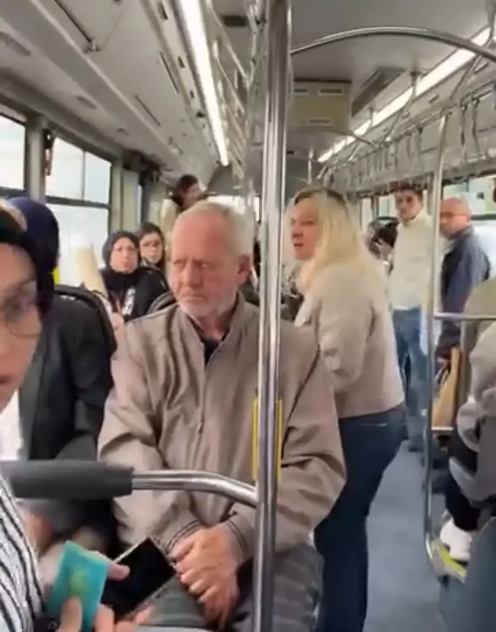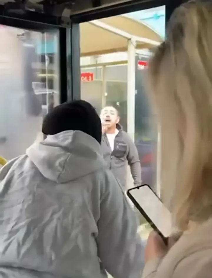 Bu sırada işe geç kalan yolculardan biri duruma tepki gösterdi. O anlar ise başka bir yolcu tarafından cep telefonu kamerasıyla görüntülendi.