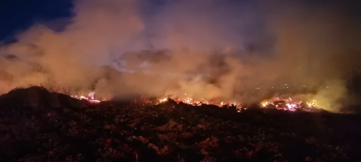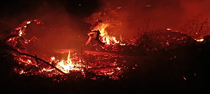 Karaçalı mevkisinde O.D'ye ait çiftlik arazisinde, çürümüş ağaç ve köklerin kontrollü olarak yakılması sırasında rüzgarın etkisiyle alevler kısa sürede yayıldı.