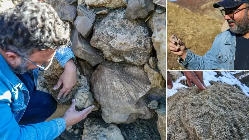 Bingöl'ün Şaban köyü kırsalındaki dağlık alanda 50 milyon yıl öncesine ait olduğu değerlendirilen deniz canlısı fosilleri tespit edildi.