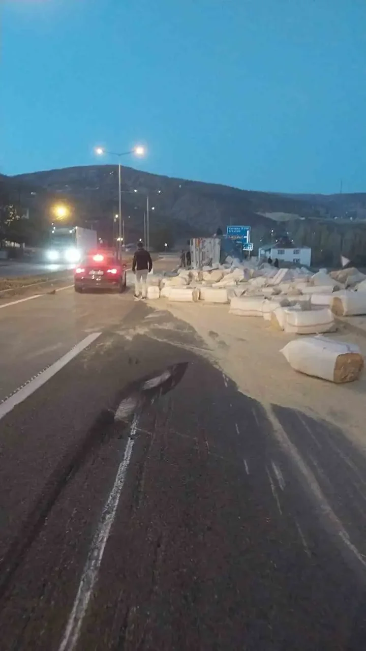 Bingöl’de saman yüklü kamyonun devrilmesi sonucu maddi hasar meydana geldi.Kaza, Bingöl-Erzurum karayolu Ilıcalar mevkiinde meydana geldi. Edinilen bilgiye göre, 12 AFN 110 plakalı saman yüklü kamyon, sürücüsünün direksiyon hakimiyetini kaybetmesi sonucu kontrolünden çıkarak devrildi. Kaza sonrası yolun bir bölümü kısa süreliğine trafiğe kapandı. Kamyondaki saman balyaları yola savrulurken, bölgeye jandarma ve karayolları ekipleri sevk edildi.Ekiplerin çalışmasıyla yol tekrar kontrollü şekilde ulaşıma açıldı.