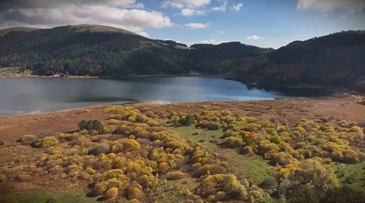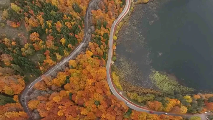 Dronla havadan görüntülenen Abant Gölü Milli Parkı’nda sarı, kırmızı ve yeşilin tonlarının oluşturduğu görsel şölen kartpostallık manzaralar ortaya çıkardı.