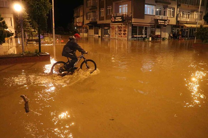 Bolu'nun Mengen ilçesinde şiddetli sağanak sebebiyle taşan dereler ilçeyi sular altında bıraktı. Ev ve iş yerlerini suların bastığı ilçede birçok mahalleye girişler yasaklandı.