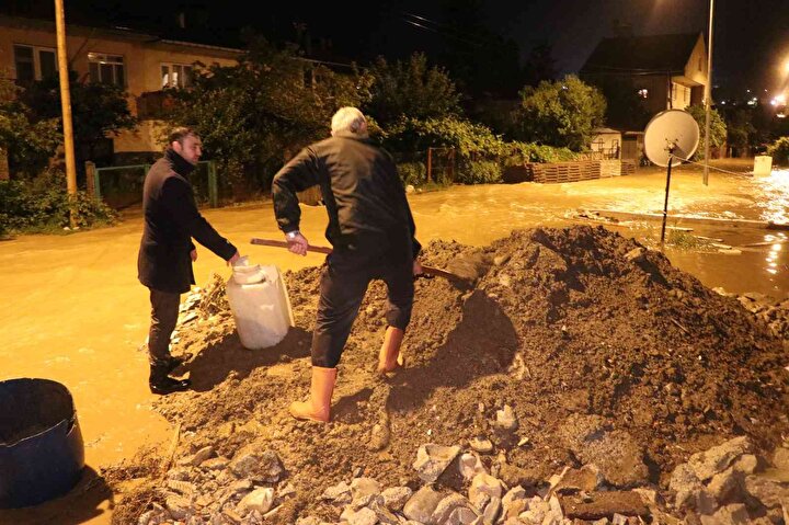Evlerde yaşanan su baskınları sebebiyle bazı mahallelere girişler şeritler çekilerek yasaklandı.