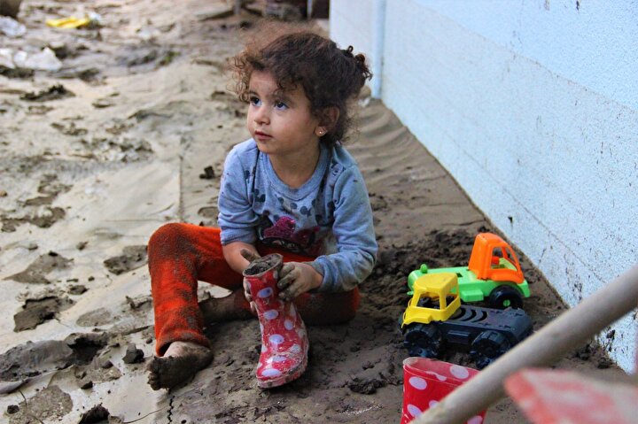 Felaketin en masumu olan çocuklar ise, hiçbir şeyden habersiz, bahçelerini dolduran çamurun içinde oyunlarını oynayarak eğlenmeye devam etti.