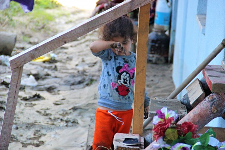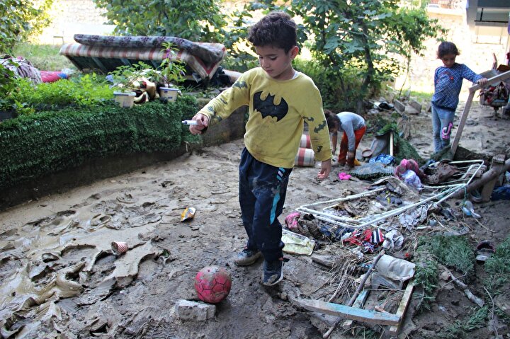 Kastamonu'nun Bozkurt ilçesinde yaşanan sel felaketinin ardından çocukların hiçbir şeyden habersiz çamurun içerisinde oyun oynamaya devam etmeleri yürek burktu. 8 yıldır Türkiye'de yaşadığını ve inşaatta çalıştığını belirten yabancı uyruklu Hasan Mıhaymıt, “Selle birlikte evimiz ve çevresi sular altında kaldı, bütün eşyalarımız gitti. Bu hale geldik. Çocuklar ise çamurda oyun oynuyor, top oynuyor, biz temizlemeye çalışıyoruz” dedi.