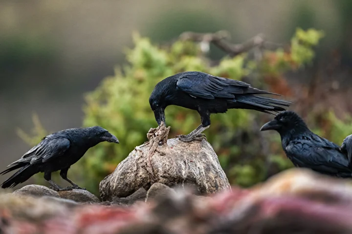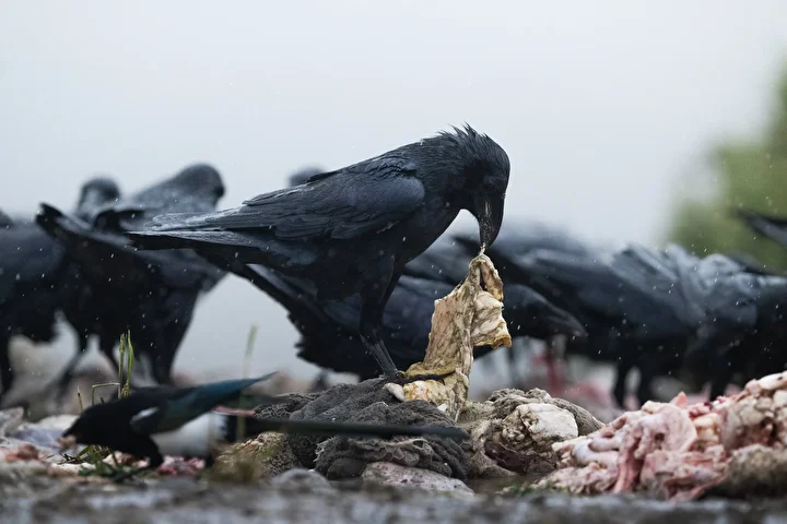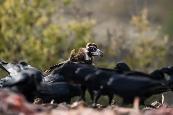 Görevliler tarafından istasyonun önüne bırakılan leşler, günün ilk ışıklarıyla birlikte akbaba başta olmak üzere birçok leşçil kuş türünü bölgeye çekiyor.