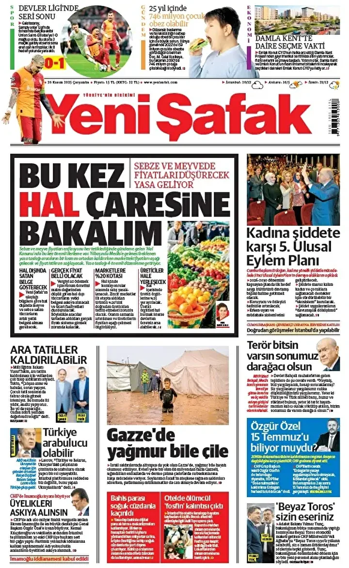 Yeni Şafak Gazetesi'nin 26 Kasım 2025 tarihli sayısına hoş geldiniz. Gündem, spor ve ekonomi sayfalarımızda bugünün öne çıkan haberlerini keşfedin.