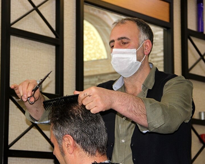 Her tıraştan sonra makasları ve tıraş malzemelerini dezenfekte eden berberler müşterilerin sıra bekleme sırasında etkilenmemeleri için ise randevu sistemini kullanıyorlar.