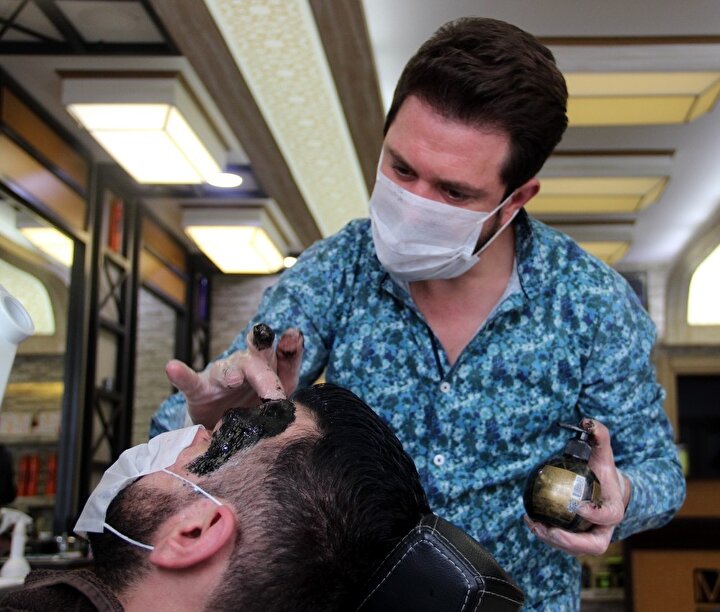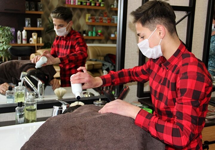 Erzurum'da bir kuaför salonu sahibi tıraş olmaya gelen müşterilerine korona virüsüne önlem almak amacıyla önce maske takıp sonra tıraş ediyor. Hem müşterilerin hem berberlerin maskeli olduğu kuaför salonunda tıraştan önce ve sonra ellerde dezenfekte ediliyor. Berber Tolga Gürbüz, "Ülkemiz zor bir süreçten geçiyor herkesin birbirine yardımcı olması lazım. Bizde maske ve eldivenlerimizi takarak daha hijyen bir ortam oluşturmaya çalışıyoruz.” dedi.
