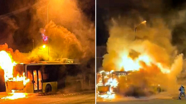 Öte yandan, otobüsün yandığı anlar çevredeki vatandaşların cep telefonu kamerasınca kaydedildi.