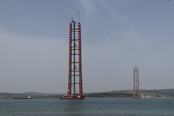 Denizin dibine çakılan demir kazıkların üzerine geçen yıl mayıs ayında batırılan kule kesonları üzerine ilk bloklar, ağustos ayında konuldu ve kırmızı-beyaz renkleriyle Türk bayrağını simgeleyen köprü ayakları yükselmeye başladı. Aradan geçen 9 aylık sürede, Çanakkale Deniz Zaferi’nin kazanıldığı tarih olan 18 Mart’ı temsil eden 318 metre yüksekliğindeki köprü ayakları tamamlandı. Geçtiğimiz günlerde, Lapseki yakasındaki köprü ayağına son bloğun montajı, Cumhurbaşkanı Recep Tayyip Erdoğan'ın videokonferans ile katıldığı törenle gerçekleştirildi. Lapseki ilçesi Şekerkaya mevkiindeki şantiyede düzenlenen törene, Ulaştırma ve Altyapı Bakanı Adil Karaismailoğlu da katıldı.