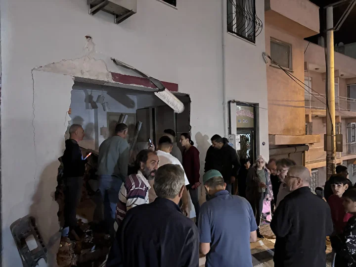 İzmir'in Bayraklı ilçesinde, freni boşalan kamyon 4 katlı bir apartmanın giriş katındaki dairenin duvarına çarptı.
