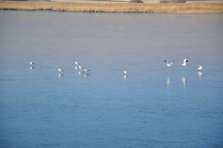 Kısmen donan Çıldır Gölü üzerinde sürüler halinde kayarak düşe kalka yürümeye çalışan su kuşları da kameralara yansıdı. Su kuşları gölün buz tutmayan yerlerine ulaşmak için metrelerce yürüdü. O anlar kartpostal görüntüler ortaya çıkardı.