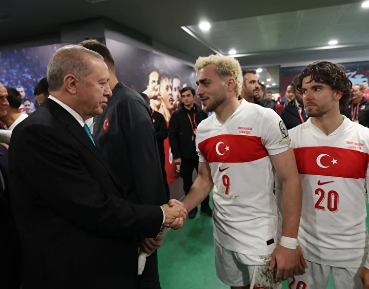 Cumhurbaşkanı Recep Tayyip Erdoğan, A Milli Futbol Takımı'nın, Gürcistan ile 2026 Dünya Kupası Avrupa Elemeleri E Grubu'nda karşılaştığı maçı takip etti. Cumhurbaşkanı Erdoğan, soyunma odasına inerek karşılaşmadan 4-1 galip ayrılan Milli oyuncuları tebrik etti.
