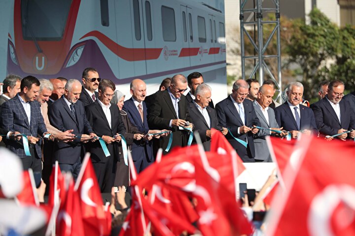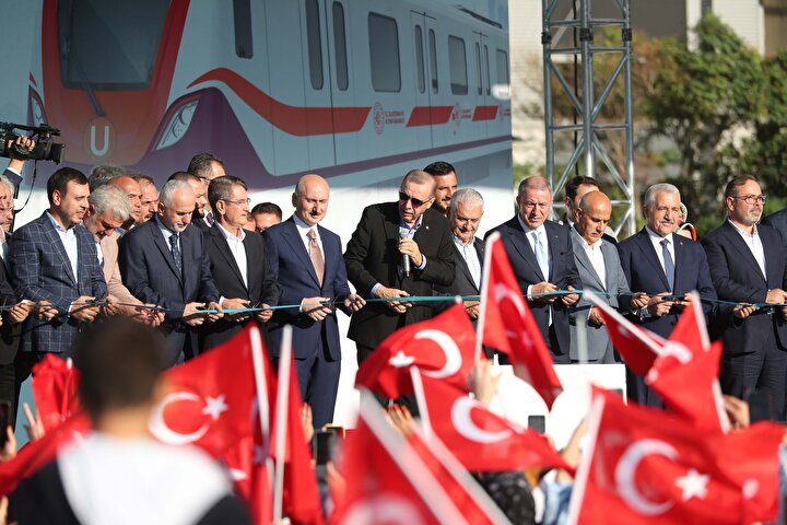 Açılışı yapılan Tavşantepe-Sabiha Gökçen Havalimanı metro hattının hayırlısı olması dileğinde bulunan Cumhurbaşkanı Erdoğan, "Uzunluğu 7,4 kilometre olan dört istasyonlu bu metro hattı Sabiha Gökçen Havalimanı'nı Pendik'e, Anadolu Adliyesi'ne Kadıköy'e bağlamaktadır. Artık Sabiha Gökçen'e Pendik'ten 10 dakikada, Kartal'dan 12 dakikada, Kadıköy'den 50 dakikada ulaşmak mümkün hale gelmiştir. Önümüzdeki birkaç ay içinde şu an devam eden yatırımlar da tamamlandığında bu hattı İstanbul Havalimanı'na kadar ulaştıracağız. Bugünkü açılışta İstanbul'daki raylı sistem uzunluğunu 270 kilometrenin üzerine çıkarıyoruz. Halen inşası süren projelerle bu 366 kilometreyi geçecektir. İstanbul'daki raylı sistem ağının yarısı Ulaştırma ve Altyapı Bakanlığımız tarafından İstanbul'a kazandırılmaktadır. Birileri bizim yaptığımız bu raylı sistemlere ne yapmak istiyor? Sahiplenmek istiyor. Bunların kimler olduğunu anlıyorsunuz değil mi? Ama bunlara en güzel dersi inşallah Haziran'da vermeye var mıyız? Türkiye 811 kilometrelik şehir içi raylı, 312 kilometresi de yine Ulaştırma ve Altyapı Bakanlığımızca gerçekleştirilmiştir. İşte bunun adı yol medeniyettir. Raylı sistem medeniyettir. Bu medeniyete bu moderniteye benim vatandaşlarım layıktır" diye konuştu.