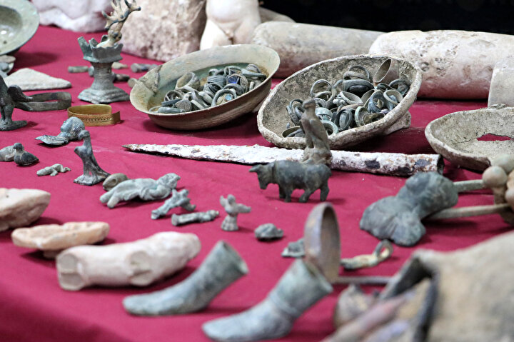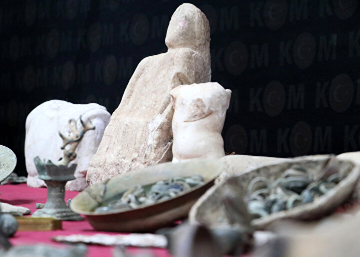 Operasyonda yapılan aramalarda, yaklaşık 70 bin parça sikke ve heykel gibi tarihi eser niteliği taşıyan obje ile suçtan elde edildiği değerlendirilen 70 bin dolar ve 11 bin Euro ele geçirildi.