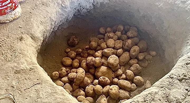Mahalle sakinleri, hazırladıkları patatesleri kış boyunca bozulmadan saklayabilmek için "gömme depolama" olarak bilinen eski bir yöntemi sürdürüyor.
