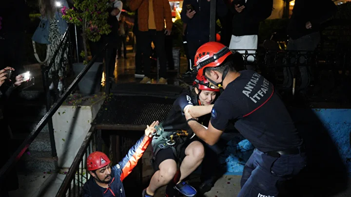 Antalya'da denizde supboard yapan 2 kişi yağışın etkisini artırması ve dalgaların yükselmesiyle falezlerdeki mağaraya sığındı. Burada 6 saat mahsur kalan ikili AFAD ve itfaiye ekiplerinin kurduğu halat sistemiyle kurtarıldı.