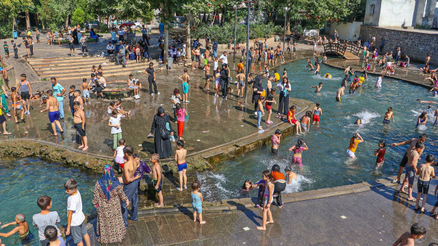 Diyarbakır'da mevsim normallerinin üzerinde seyreden hava sıcaklığıyla termometreler 48 dereceyi gösterdi. Sıcakta çocuklar süs havuzuna vatandaşlar ise gölgelik alanlara akın etti.