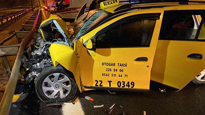 Edinilen bilgiye göre, Edirne’den aldığı 9 yabancı uyruklu yolcuyu İstanbula getirmek için yola çıkan Adnan Yılmaz idaresindeki 22 T 0349 plaklı ticari taksi, direksiyon hakimiyetini kaybedince önünde seyir halinde olan yakıt tankerine arkadan çarptı.
