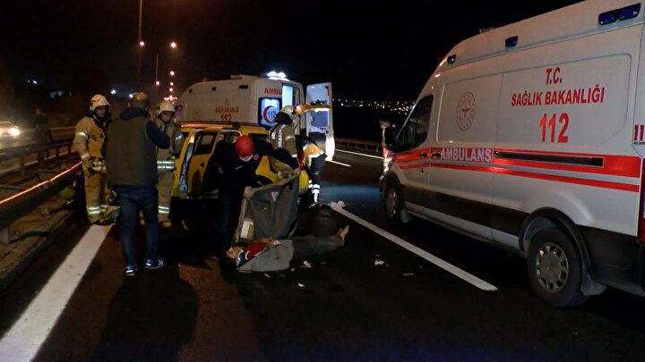 Çarpmanın etkisiyle savrulan ticari taksi bariyerlere çarparak dururken ticari taksi sürücüsü Adnan Yılmaz ve 9 yabancı uyruklu yolcu yaralandı.