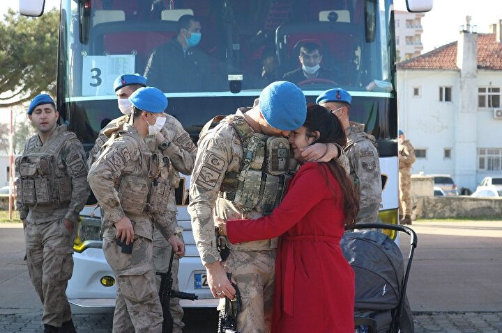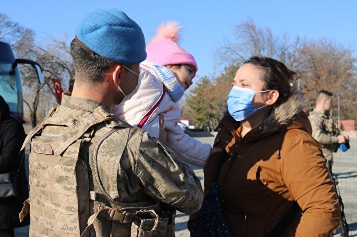 Törenin ardından askerler aileleriyle kucaklaşıp dualarla uğurlandı.