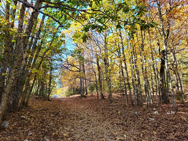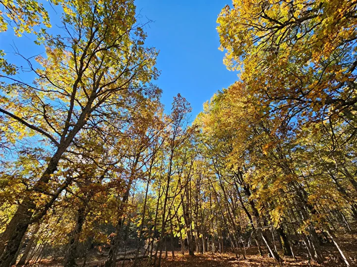 Isparta'nın Eğirdir ilçesindeki dünyadaki tek kasnak meşesi ormanında yaşları 1000 yılı bulan ağaçlar, sonbahar renkleriyle dikkat çekiyor. Kasım ayı sonuna kadar ormana sadece özel izinle, eğitim ve bilimsel amaçlı girilebiliyor. Ormana izinsiz girişin para cezası ise 557 bin 212 TL.