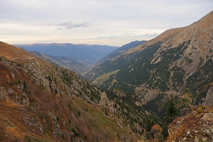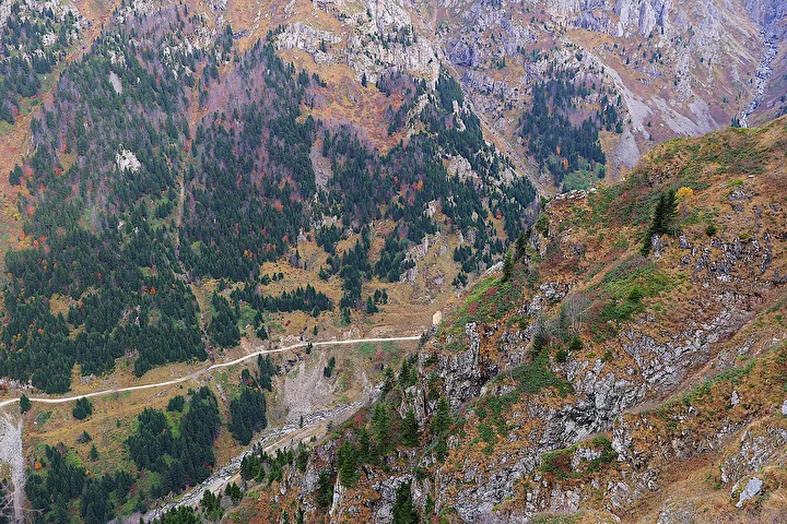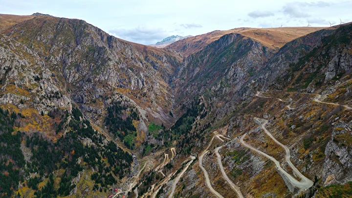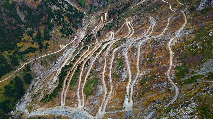 Dünyanın en zorlu yolları arasında gösterilen Bayburt-Trabzon arasında bulunan Soğanlı Dağı üzerindeki Derebaşı Virajları, sonbahar renklerine büründü.