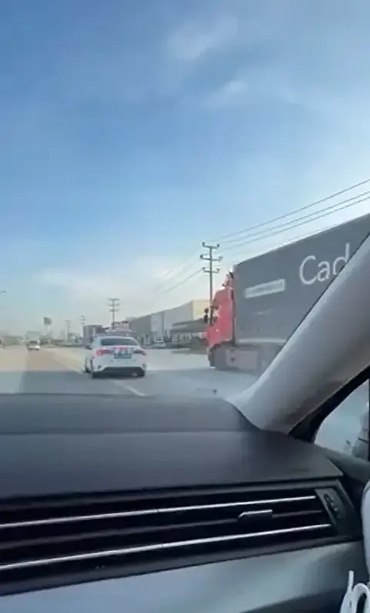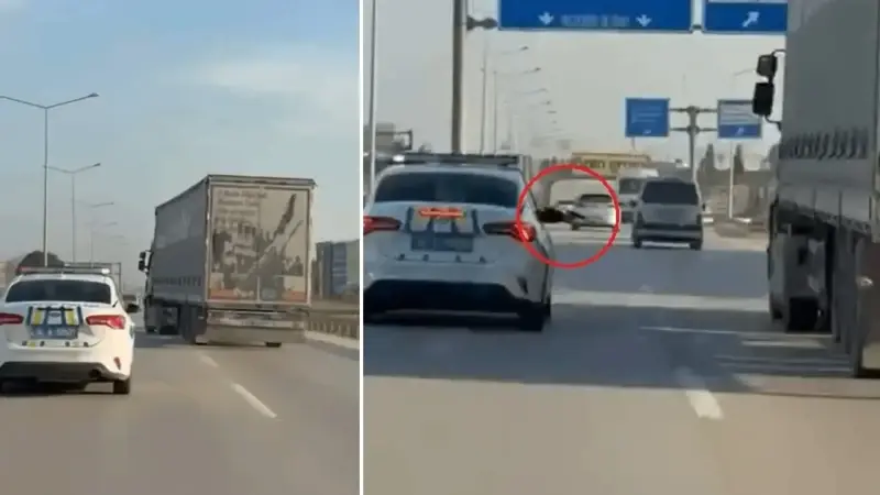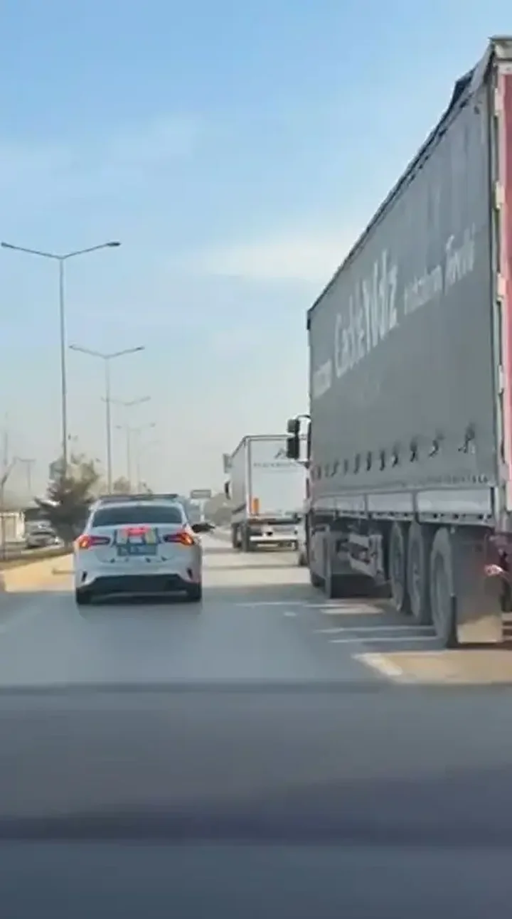 Hızla kaçmaya başlayan sürücü, manevra yaparak trafikte ilerlerken, TIR’la, ekip otosu yan yana geldiği sırada, polis memurunun camdan silah çıkarıp, TIR'ın lastiklerine doğrulttuğu anlar, bir başka sürücü tarafından cep telefonu kamerasıyla görüntülendi.