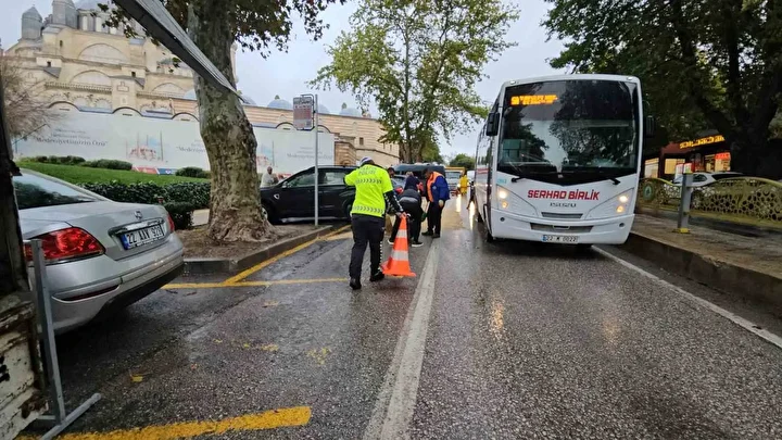 4 aracın karıştığı kazada bir sürücü kaldırıma çıktı, diğer araçlar ise birbirine çarparak durabildi.