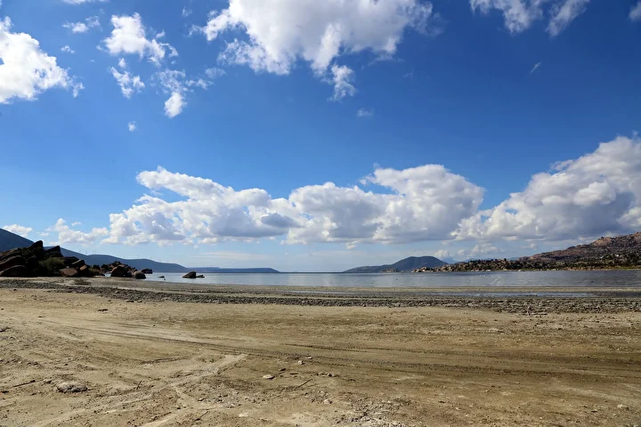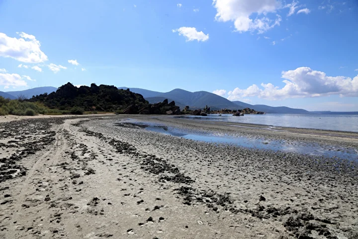 Ege Bölgesi'nin en büyük doğal gölü olan Bafa'da, bu yıl yaşanan kuraklık nedeniyle sular 40 metre civarında çekildi.