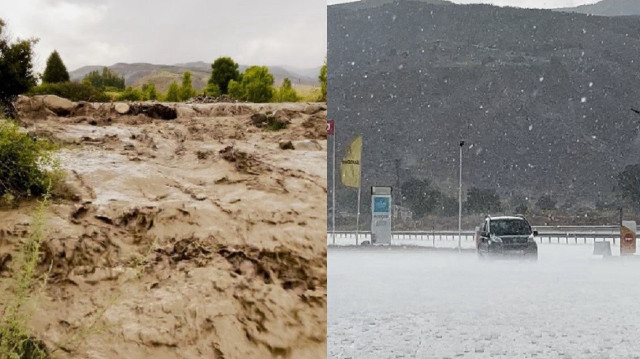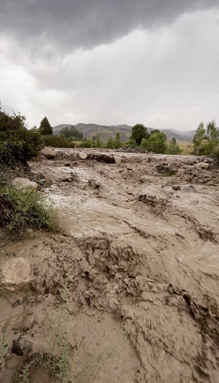 Erzincan'da etkili olan sağanak yağış, kısa sürede sele dönüştü. Erzincan-Sivas kara yolu üzerindeki Sakaltutan mevkiinde bulunan dereler taştı, çevredeki yollar sular altında kaldı.