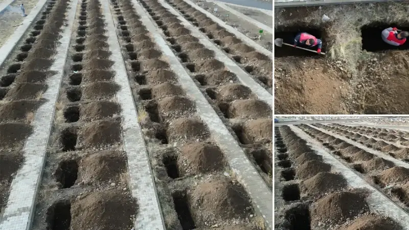 Hava sıcaklığının sıfırın altında 25 dereceye düştüğü, toprağın donduğu Erzurum'da, dondurucu soğuklar öncesi 500 mezar kazılıp, hazır hale getirildi.