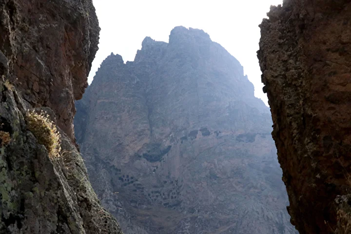 Kayseri'nin Develi ilçesinde dağın yamacına kayalar oyularak inşa edilen Öksüt Kalesi, en az 2 bin yıllık olduğu değerlendirilen geçmişiyle adeta zamana meydan okuyor.