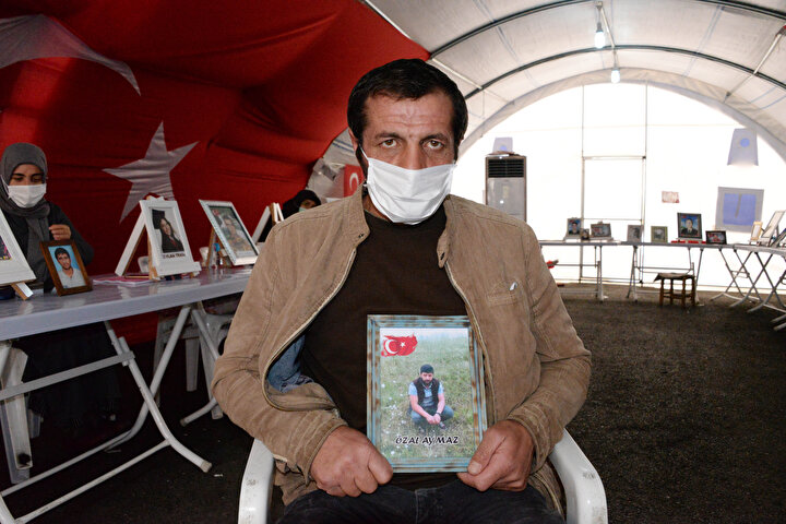 Kars'ta 2014'te bir nakliye şirketinde işçi olarak çalıştığı sırada terör örgütü PKK tarafından kaçırılan kardeşi Özal için HDP Diyarbakır İl Başkanlığı binası önünde oturma eylemini sürdüren Fettah Aymaz, HDP'nin çocukları kaçırıp, dış güçlere peşkeş çektiğini söyledi. Kardeşinin terör örgütünden kaçıp güvenlik güçlerine teslim olmasını isteyen Aymaz, "Öncelikle İzmir'de yaşanan deprem için tüm İzmir halkına geçmiş olsun, depremde yaşamını yitirenlere Allah'tan rahmet, yaralılara acil şifalar diliyorum. Kardeşime sesleniyorum buradan, gelsin güvenlik güçlerine teslim olsun, korkmasın bir şey olmayacak. Bir yolunu bulsun, ya da bizi arasın güvenlik güçlerine teslim olsun. Başkalarının oyununa gelmesin. HDP çocuklarımızı bizden alıyor dış güçlere peşkeş çekiyor. Kendi devletimizde, kendi toprağımızda huzurluyuz. Huzursuzluk yapanlar çocuklarımızı alıp, başkalarına peşkeş çekiyor. Biz çocuklarımızı istiyoruz, onları almadan buradan gitmeyeceğiz" dedi.