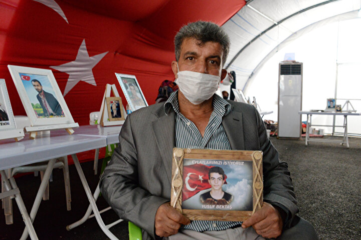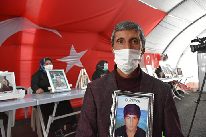 Diyarbakır'da terör örgütü PKK tarafından kaçırılan çocuklarının bulunmasını isteyen 154 ailenin HDP il binası önündeki oturma eylemi, 429'uncu günde de sürüyor. 6 yıl önce 23 yaşındayken kaçırılan kardeşi Özal için oturma eylemi yapan Fettah Aymaz, kardeşine 'Teslim ol korkma bir şey olmayacak' diyerek seslendi. Aymaz, ayrıca "HDP çocuklarımızı bizden alıyor dış güçlere peşkeş çekiyor. Kendi devletimizde, kendi toprağımızda huzurluyuz. Huzursuzluk yapanlar çocuklarımızı alıp, başkalarına peşkeş çekiyor" dedi.