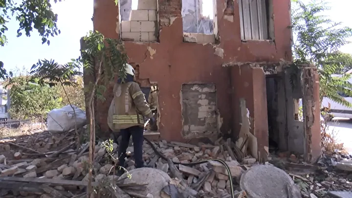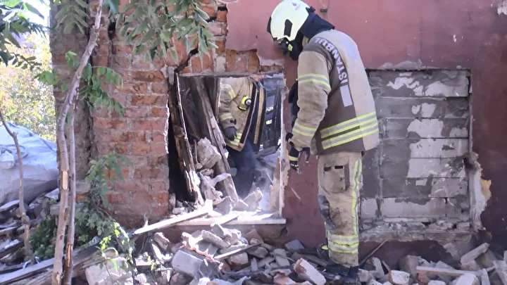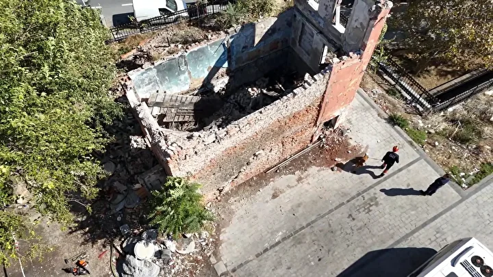 İstanbul Fatih’te 2 katlı metruk binada çökme meydana geldi. Çökmenin yaşandığı bina havadan görüntülenirken, itfaiye ekiplerinin enkaz kaldırma çalışmaları devam ediyor.