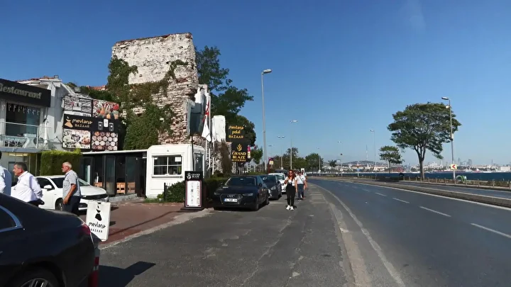 İstanbul’un en işlek sahilyollarından Kennedy Caddesi'nde, tarihi surların üzerinde bulunan ve yaklaşık 10 ay önce tahliye edilen yapı kaderine terk edildi. Kepçeyle yıkımına başlanmasına rağmen altında tarihi yapı olduğu için tamamen kaldırılamayan bina kalıntıları, hem çevredeki işletmeler hem de her gün bölgeden geçen yüzlerce turist için tehlike oluşturuyor. Atıl haldeki görüntüsü ise turizm açısından kötü bir izlenim bırakıyor.Çevredeki bir kafede çalışan Hüseyin Akarsu, yıllardır yıkılma tehlikesiyle karşı karşıya olduklarını belirterek, "Bu duvarın yıkılması için canımız tehlikede. Burada çay ocağımızda oturuyoruz. Yağmur yağdığında, rüzgar hızlı estiğinde taşlar dökülüyor.Gördüğünüz şekilde" dedi.