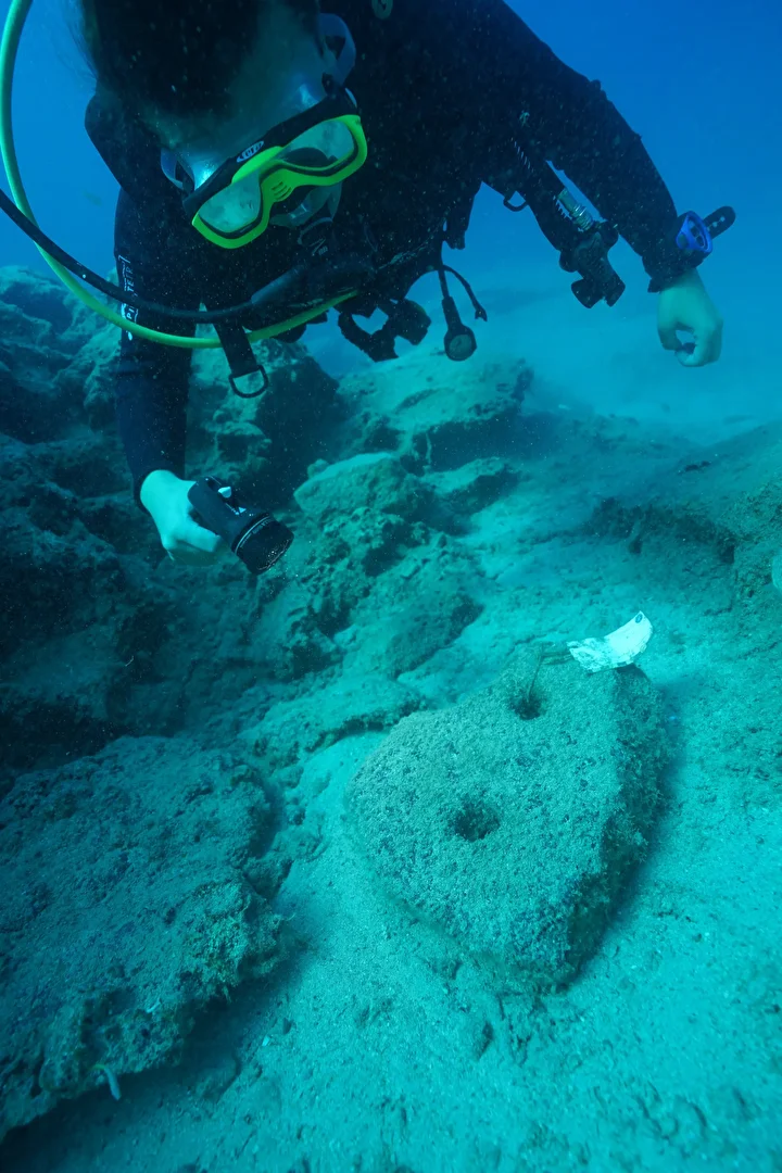 Akdeniz Üniversitesi Güzel Sanatlar Fakültesi Kültür Varlıklarını Koruma ve Onarım Bölümü Başkanı ve Araştırma Başkanı Doç. Dr. Hakan Öniz ve ekibi, suyun metrelerce derinliğindeki tarihi kalıntıların gün yüzüne çıkarılması için önemli çalışma gerçekleştiriyor.