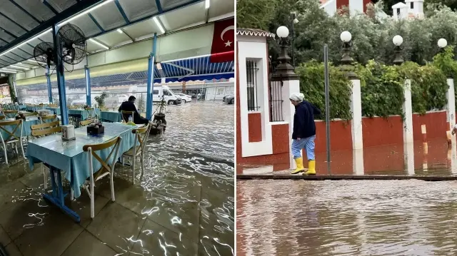 Meteoroloji Genel Müdürlüğü'nün turuncu kodlu uyarısının ardından Muğla'nın Fethiye ilçesinde de sağanak etkili oldu. Sağanak nedeniyle cadde ile sokaklar suyla doldu.
