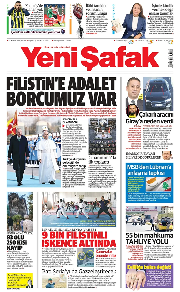 Yeni Şafak Gazetesi'nin 28 Kasım 2025 tarihli sayısına hoş geldiniz. Gündem, spor ve ekonomi sayfalarımızda bugünün öne çıkan haberlerini keşfedin.