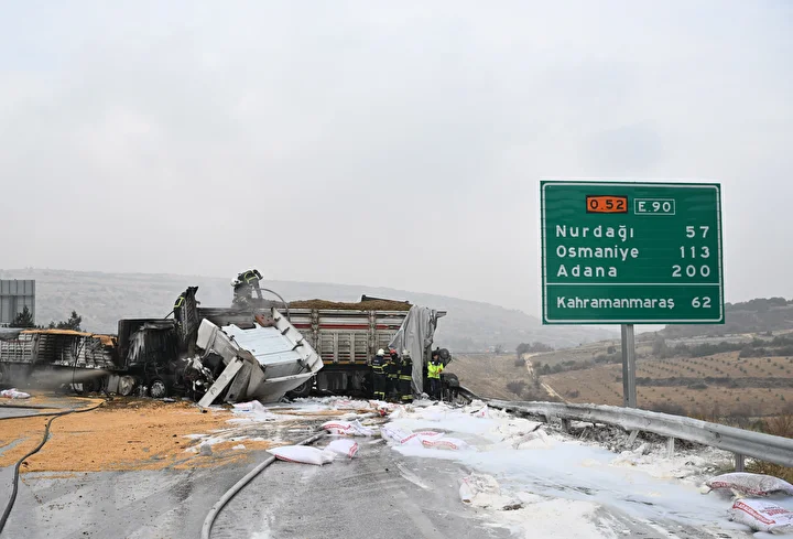 Tarsus-Adana-Gaziantep (TAG) Otoyolu Gaziantep batı gişeleri yakınlarında 3 tırın çarpışması sonucu yangın çıktı. Yangın itfaiye ekiplerince söndürürken otoyolun Adana istikameti tedbir amaçlı trafiğe kapatıldı. Kaza, Tarsus-Adana-Gaziantep (TAG) Otoyolu Gaziantep batı gişeleri kesiminde meydana geldi. İddiaya göre, plakaları ve sürücülere öğrenemeyen mısır, un vs gübre yüklü 3 tırın karıştığı kaza sonrası yangın çıktı. 112 Acil Çağrı merkezine yapılan ihbar üzerine olay yerine çok sayıda jandarma, sağlık ve itfaiye ekip sevk edildi. Olay yerine gelen itfaiye ekipleri yanan tırlara müdahale ederek alevleri söndürdü.