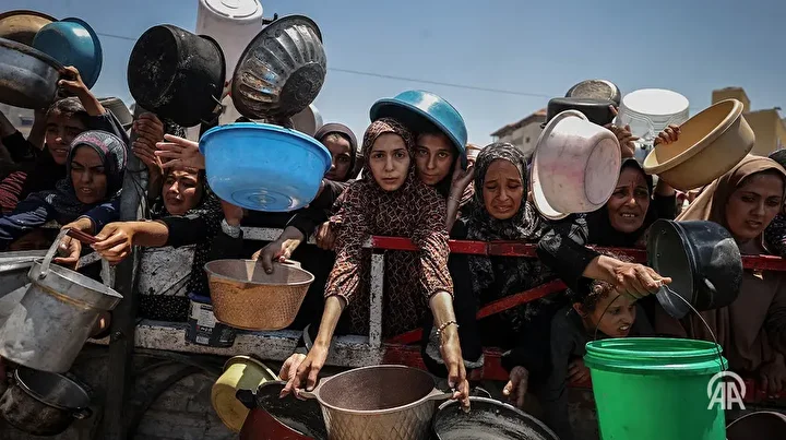 Cumhurbaşkanı Erdoğan, Birleşmiş Milletler (BM) 80. Genel Kurulu'nda Gazze'de yaşanan İsrail vahşetini fotoğraflar gözler önüne serdi. Erdoğan, "Şimdi size Gazze'deki günlük hayatı anlatan bir fotoğraf göstereceğim. Birinci fotoğraf gördüğünüz gibi ellerinde leğenli kadınlar. Lütfen hepimiz elimizi vicdanımıza koyup cevap verelim. 2025 yılında böyle bir gaddarlığın makul bir sebebi olabilir mi? Fakat insanlık adına bu utanç manzarası Gazze'de 23 aydır her gün tekrar ediyor. 365 km2 içinde yaşayan 2.5 milyon Gazze'li her gün yerinden eziliyor. Her gün bir başka bölgeye göçe zorlanıyor "dedi.