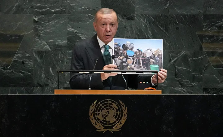 Cumhurbaşkanı Recep Tayyip Erdoğan, Birleşmiş Milletler (BM) 80. Genel Kurulu'na katılarak konuşma yaptı. Erdoğan, buradaki konuşmasında Anadolu Ajansı tarafından Gazze'de çekilen fotoğrafları gösterdi.